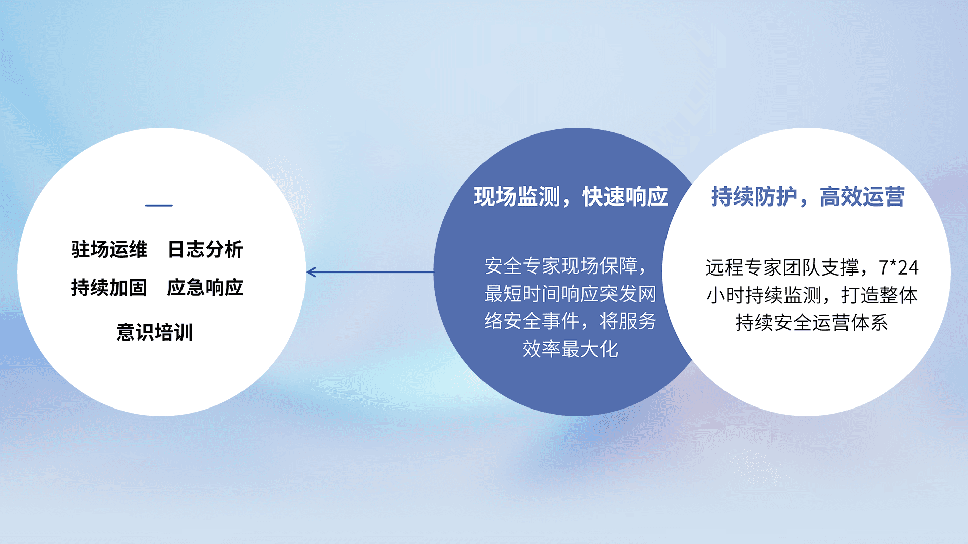 针对客户行业特性,,提供专属的一站式安全管理服务,,帮助客户全面感知网络空间威胁,,,,通过安全专家的线上、、、、线下防护支持,,实现风险闭环,,将安全保障常态化,,为客户打造常态化安全运维运营服务。。。。